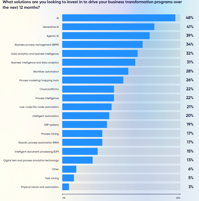 Generative AI is now a core driver of productivity and innovation. In 2025, generative AI has already emerged as a key driver of business transformation, with PEX Network finding it to be the second most popular solution respondents plan to invest in.