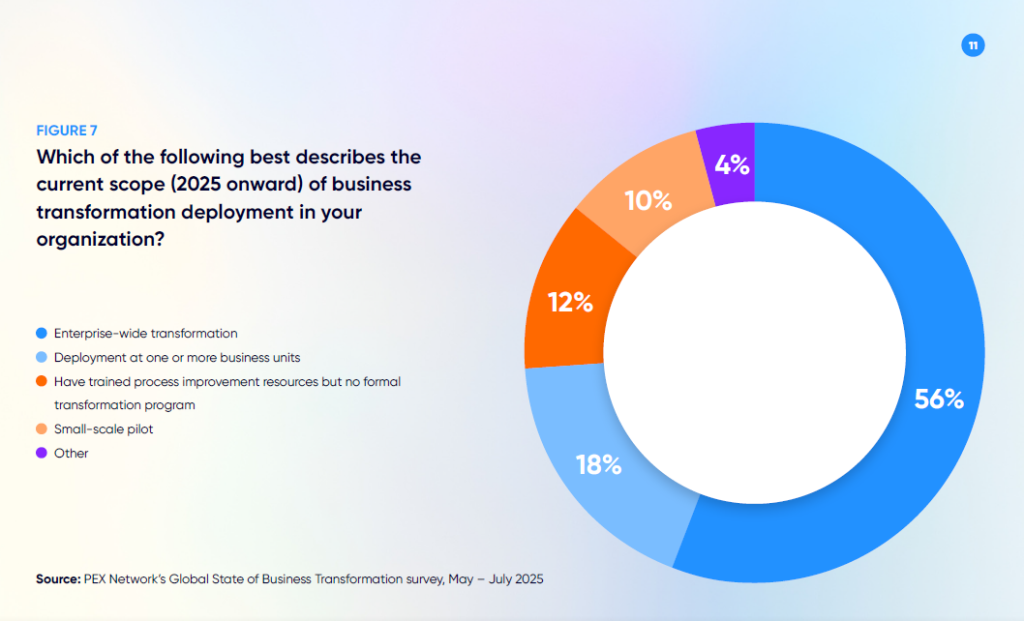 The number of organizations deploying enterprise-wide business transformation is up notably compared to 2024