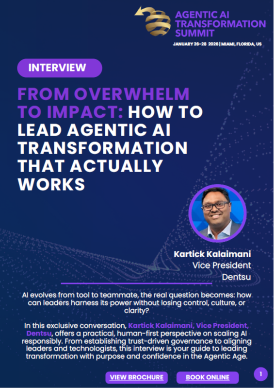 In this exclusive interview, Kartick Kalaimani, Vice President, Dentsu, shares hard-won lessons on how to bring clarity, trust, and confidence to AI-led transformation. His insights cut through the noise by helping you lead your organization through uncertainty and toward intelligent and responsible growth.